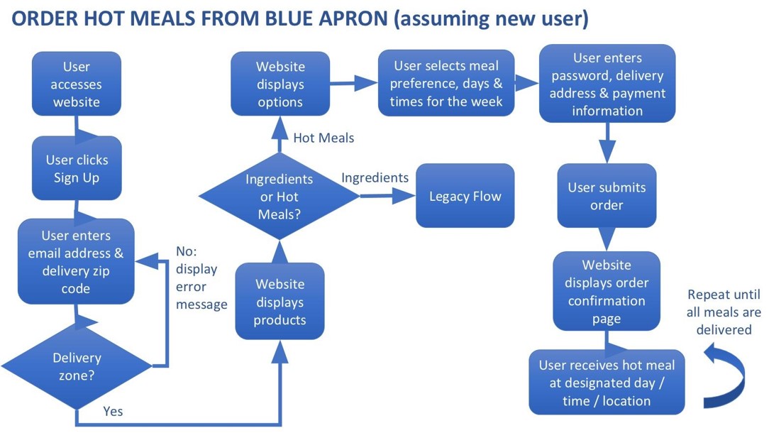 - Developed new concept of prepared meal delivery for Blue Apron as part of a Tech Product Management class team project